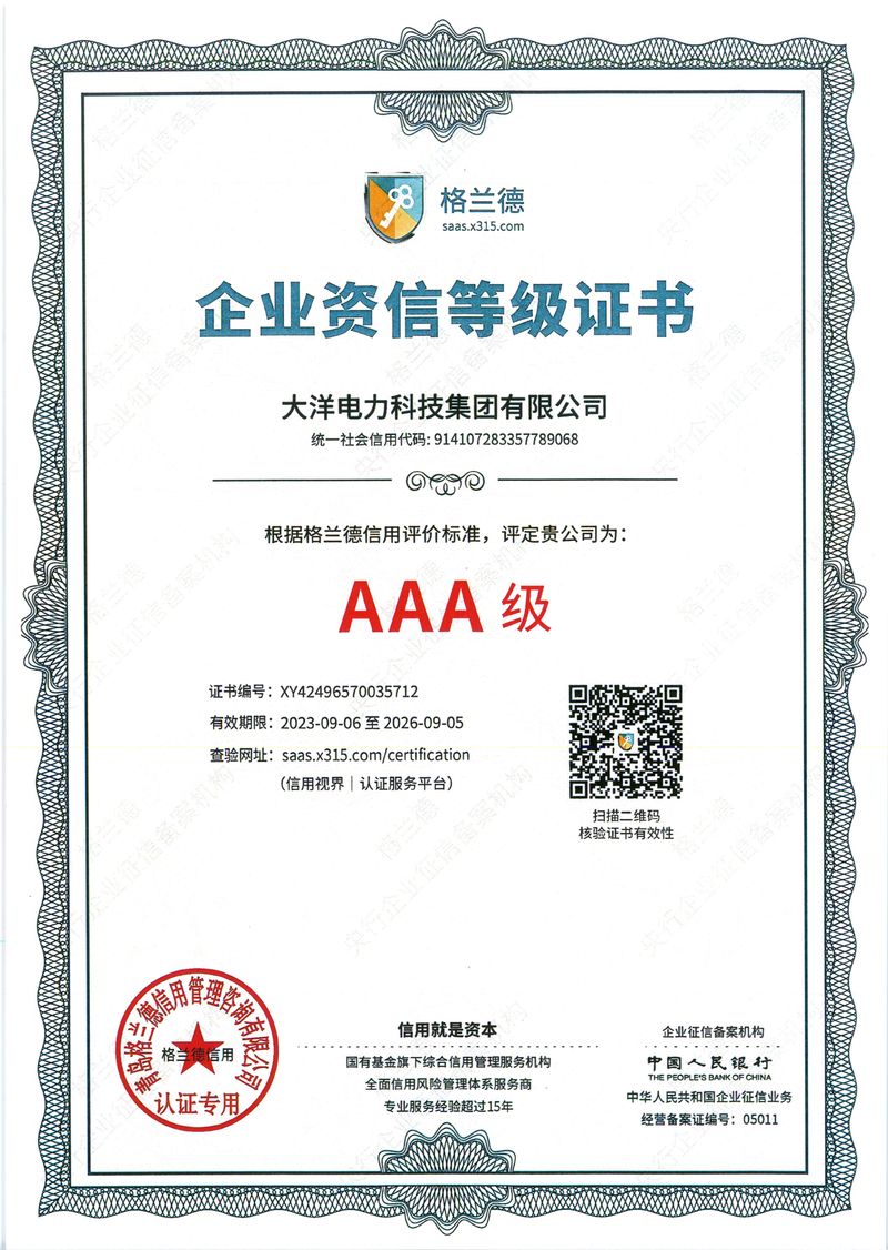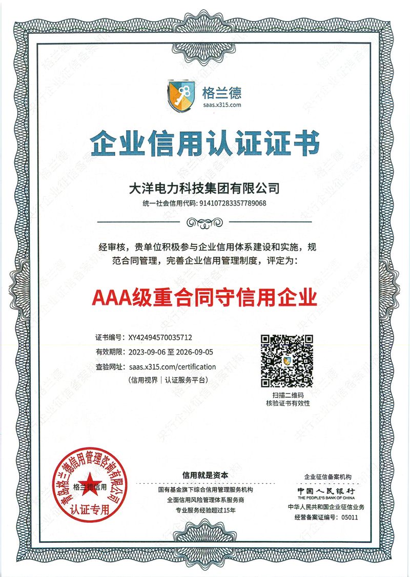 您好,歡迎進入大洋電力科技集團有限公司官方網站!